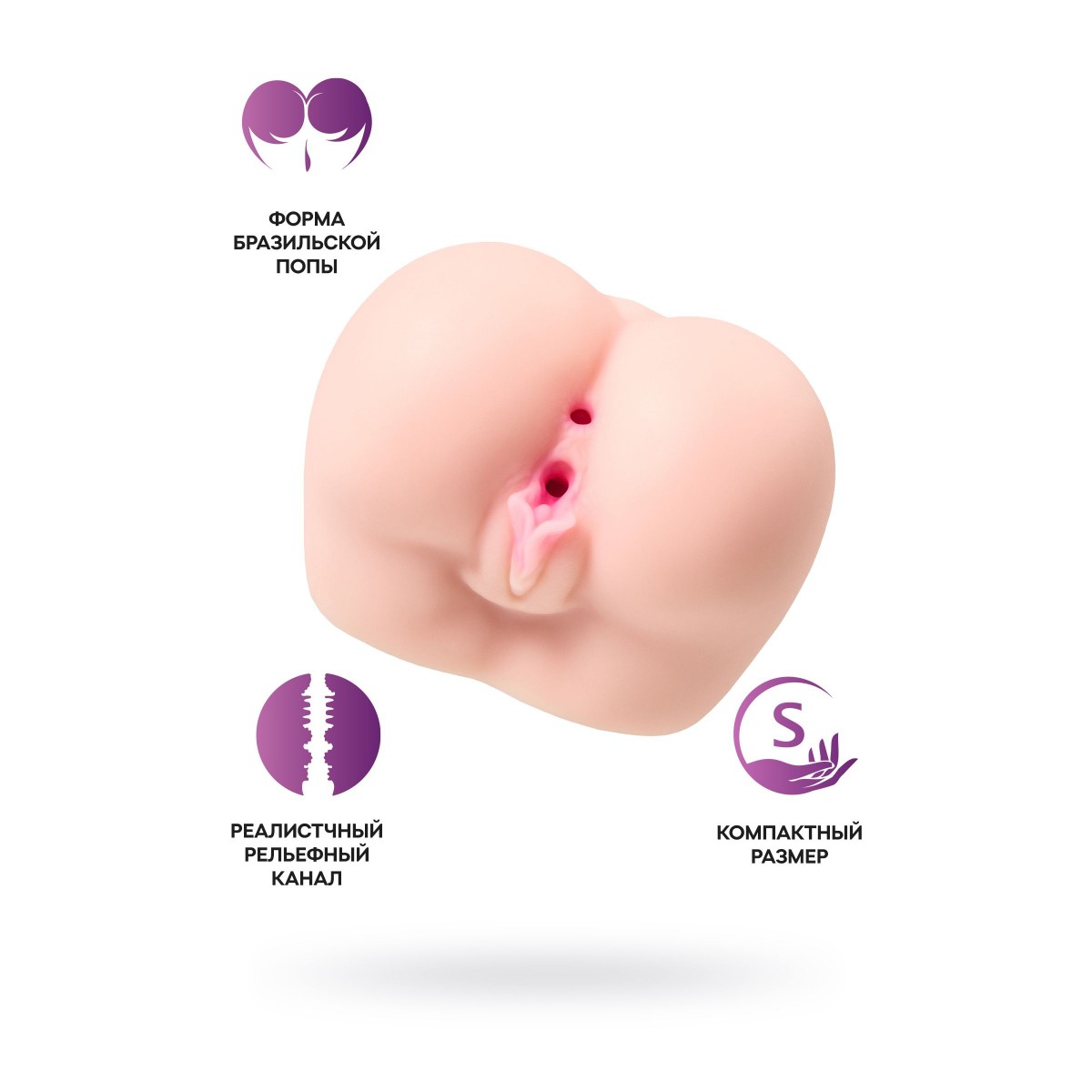 Ах, какая попка! Не обратить на нее внимание точно невозможно. Любая женщина мечтает о таком сокровище для себя. А всех мужчин магнитам тянет к таким формам. Прикосновение к шелковистому материалу, напоминающему мягкую женскую кожу, обещает нежный контакт. Каждое из двух отверстий для проникновения упруго обхватит твое мужское достоинство. Рельефные внутренние каналы промассируют член по всей длине и сделают твой оргазм ярким и незабываемым. Размеры - 16 х 15 х 13