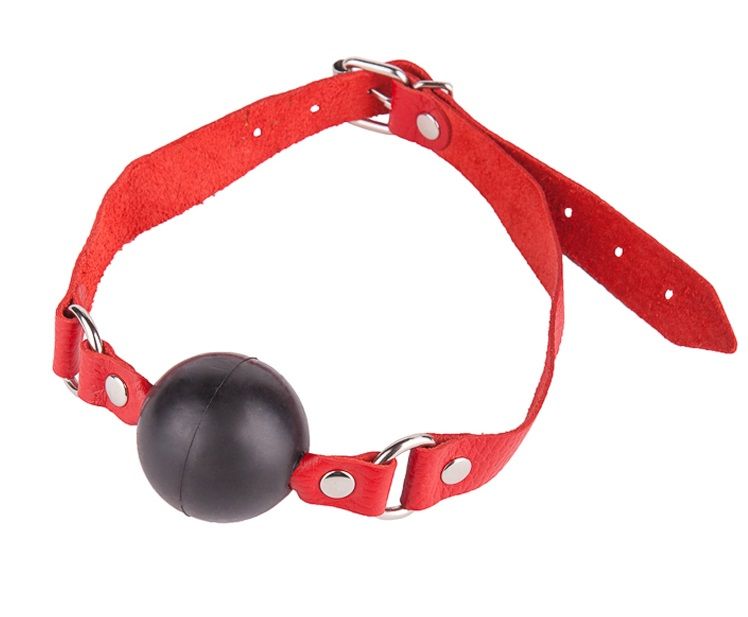 Ремешок изготовлен из натуральной кожи красного цвета. Никелированная пряжка. Шар изготовлен из латекса. Размер универсальный. Диаметр шара - 4 см.