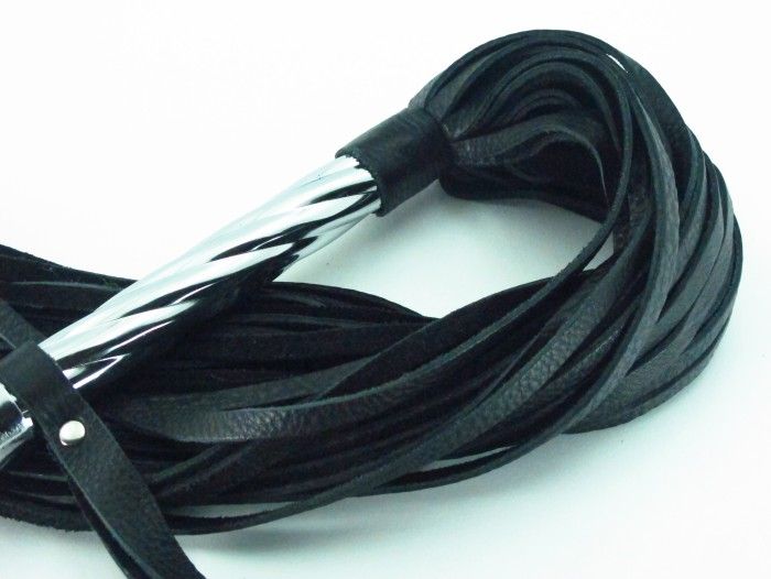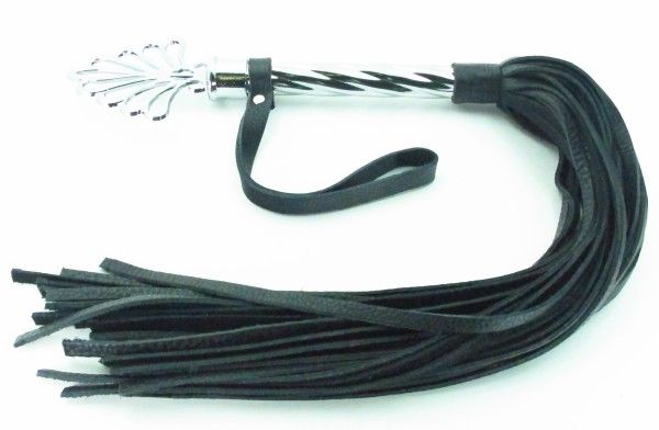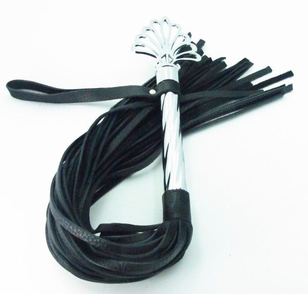 Плеть с никилиевой рукояткой из натуральной кожи. Рукоятка с рельефной поверхностью украшена своеобразной короной, имеет кожаный ремешок-петлю для удобного использования, Длина рукоятки- 25,5 см., длина хлыстов - 40 см.