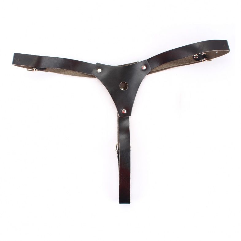 Черные кожаные трусики со штырьком для насадок.