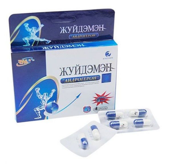 Андрогерон оказывает возбуждающий эффект, стимулирует кровообращение в сосудах полового органа, усиливает секрецию гормонов, посредством этого достигается быстрая и длительная эрекция. Содержит несколько десятков питательных элементов, активизирующих мужскую сексуальную энергию. Дополнительное действие андрогерона: укрепляет сердце, улучшает работу кровеносной системы, питает клетки почек, успокаивает нервные окончания, увлажняет легкие, останавливает кашель, облегчает дыхание, положительный эффект при усталости. Препарат совместим с алкоголем. Преимущества капсул «Андрогерон»: 1. Быстрый эффект - обычно через 15-30 минут после применения проявляется эффект Скорость восстановления эрекции после применения капсул «Андрогерон» выше, чем после химических препаратов, эрекция протекает гораздо сильнее, а период возбужденного состояния особенно длителен. Капсулы «Андрогерон» также питают и укрепляют организм. 2. Растительный состав препарата питает и оздоравливает организм. Он не содержит гормонов, химических компонентов, не противопоказан людям, употребляющим алкоголь. Капсулы «Андрогерон» не дают побочных эффектов, безопасны и надежны, в то же время они содержат питательные вещества, укрепляют организм и повышают иммунитет, подходят для применения людям с различными заболеваниями. 3. Длительный эффект - препарат оказывает лечебное действие в течение 3 - 5 дней. Лечебное воздействие капсул «Андрогерон» мягкое и длительное, они лечат как симптомы, так и причину заболевания, полностью мобилизуют потенциальные возможности организма, приводя к ярким ощущениям. Однократное применение обеспечивает длительный эффект. 4. Капсулы «Андрогерон» являются примером совершенного сочетания тысячелетней традиции китайской медицины и достижений современных высоких технологий. 5. Капсулы «Андрогерон» отличаются приемлемой ценой, их стоимость в 3 раза ниже стоимости аналогичных химических препаратов. Рекомендации по применению: рекомендуется в качестве БАД к пище, обладающей общеукрепляющим и мягким тонизирующим действием для мужчин. Препарат показан людям с пониженной потенцией и с преждевременной эякуляцией. Противопоказания: индивидуальная непереносимость компонентов БАД, повышенная нервная возбудимость, бессонница, повышенное артериальное давление, нарушение ритма сердечной деятельности, выраженный атеросклероз, прием в вечернее время. Перед применением рекомендуется проконсультироваться с врачом. В упаковке 6 капсул: 4 + 2 в подарок.