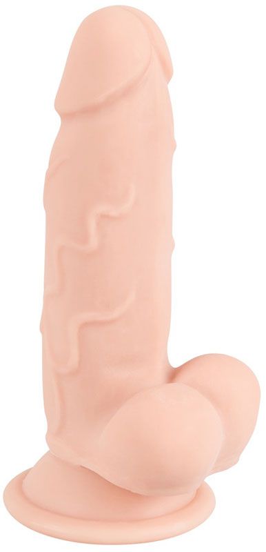 Фаллоимитатор на присоске с мошонкой. Из приятного мягкого материала, реалистичного на ощупь.